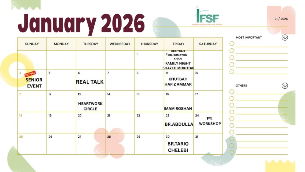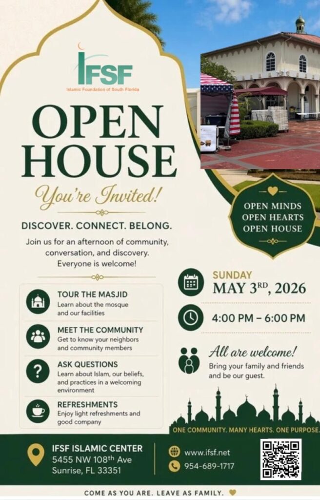 The Islamic Foundation of South Florida is dedicated to the service of Allah (SWT) by serving the Muslim community. Our mission is focused on helping our community grow in faith and action through the dissemination of Islamic knowledge.