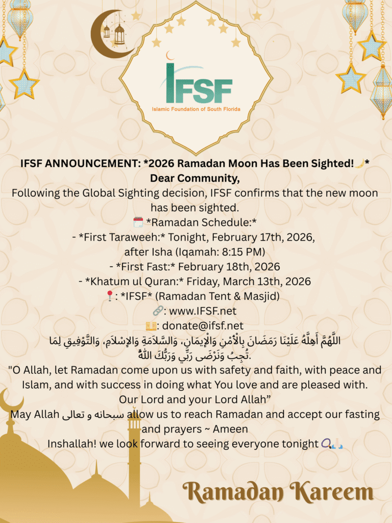 The Islamic Foundation of South Florida is dedicated to the service of Allah (SWT) by serving the Muslim community. Our mission is focused on helping our community grow in faith and action through the dissemination of Islamic knowledge.